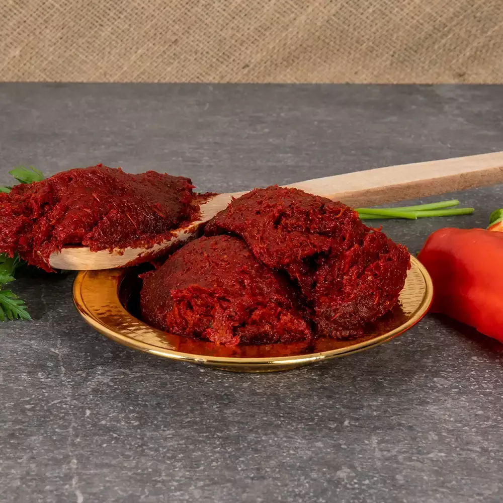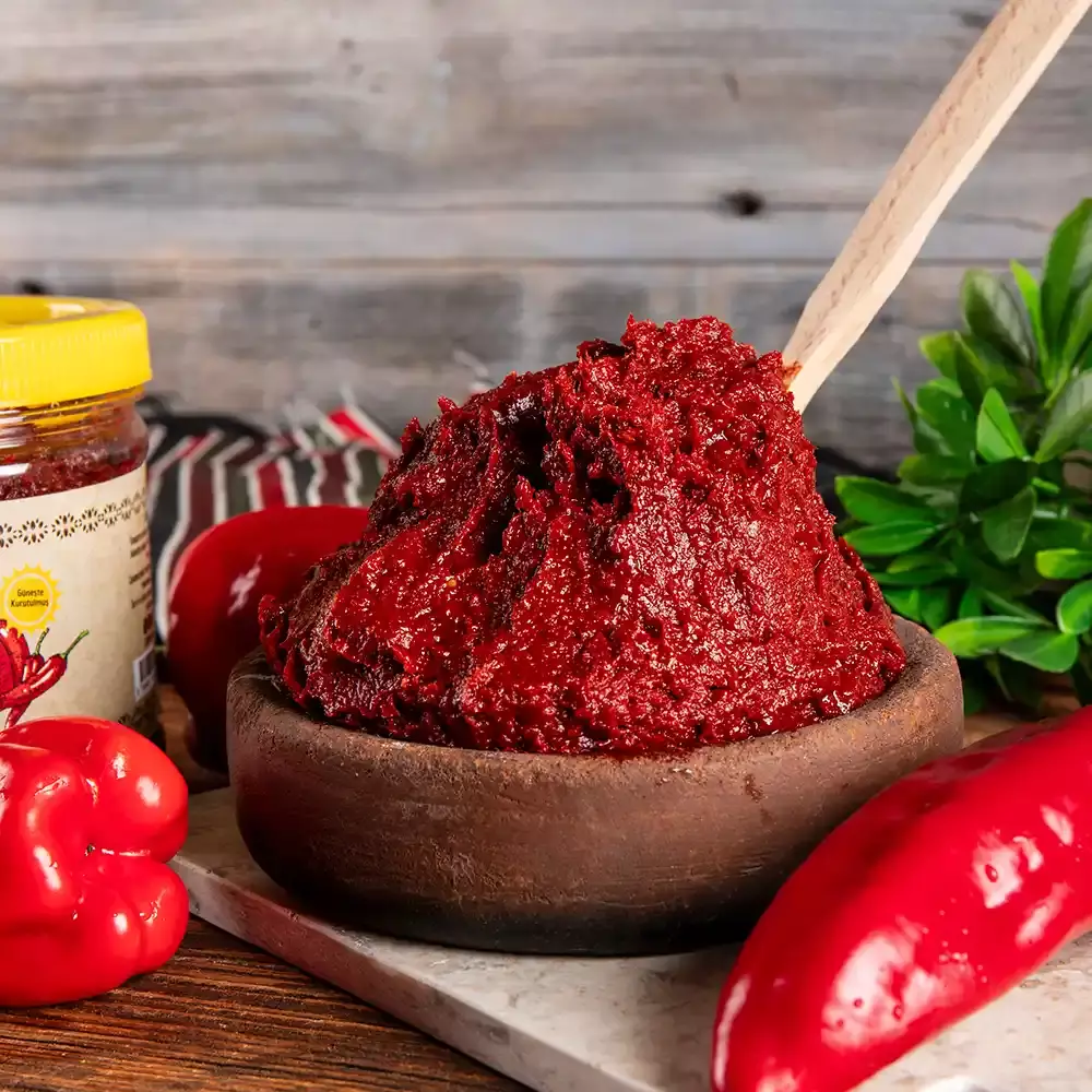 Ev tipi üretim yöntemiyle hazırlanan bu salça, pestisit içermeyen yerel domates ve biberlerden elde edilir. Katkı maddesi, koruyucu ya da boya içermez. Yoğun kıvamı ve doğal rengiyle çorbalar, yemekler, soslar ve mezeler için mükemmel bir baz oluşturur.