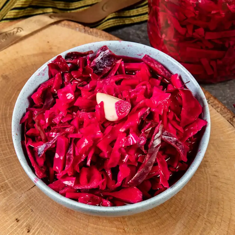 Rengini yalnızca doğal fermantasyon sürecinden alan kırmızı lahanalar, pestisit içermeyen yerli üretimden özenle seçilir. Bahçem kalitesiyle kavanozlanan turşu, et yemeklerinden bakliyatlara kadar birçok yemeğe eşlik eden geleneksel bir garnitürdür.